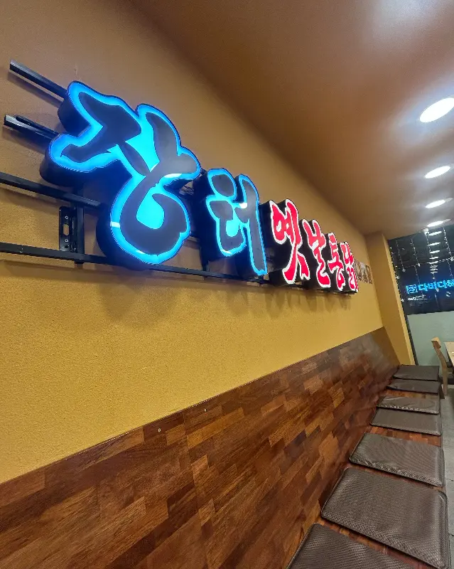 여행 전부터 친구들이 울진에 가면 꼭 들러야 할 곳이라며 입을 모아 칭찬하던 곳이었어. 덕구온천에서 몸 좀 풀고, 슬슬 배도 고파지니 친구들의 강력 추천이 떠오르더라고. 그래서 망설임 없이 핸들을 돌려 ‘장터옛날통닭’으로 향했지. 간판부터 힙스터 감성이 뿜어져 나오는 게, 딱 내 스타일이었어. 푸른색 네온사인이 반짝이는 게, 마치 나를 환영하는 듯했지.