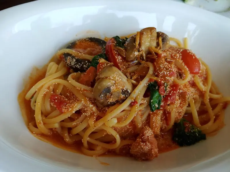 파스타도 놓칠 수 없지. 관자와 새우가 들어간 오일 파스타, 이거 완전 강추! 탱글탱글한 관자와 새우의 식감이 살아있고, 오일 소스가 느끼하지 않고 깔끔해서 좋았어. 면도 딱 알맞게 익어서 후루룩 넘어가는 식감이 예술이었지. 파스타 느끼해서 싫어하는 사람들도 파라디조 파스타는 무조건 좋아할 듯.