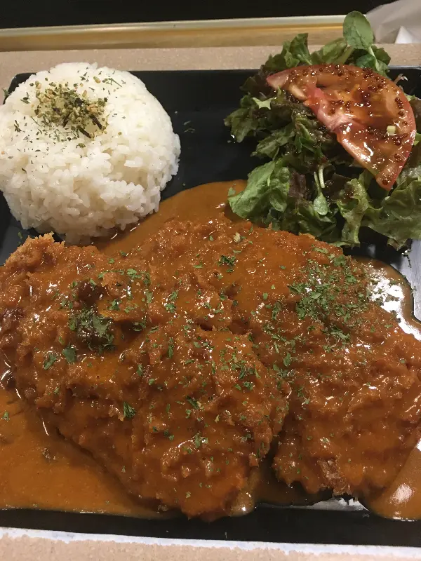 드디어 기다리고 기다리던 데미그라스 돈까스가 나왔어. 큼지막한 돈까스 위에 윤기가 자르르 흐르는 데미그라스 소스가 듬뿍 뿌려져 있고, 옆에는 샐러드와 밥이 함께 나왔지. 돈까스 크기 좀 봐! 완전 방패 수준이라니까. 겉은 바삭하고 속은 촉촉한 돈까스의 정석이라고 할까.