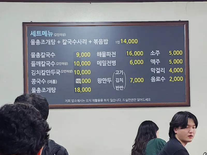 * 물총칼국수: 9,000원