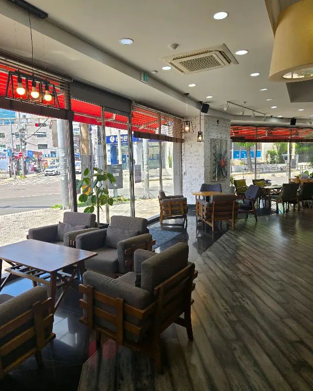 자리를 잡기 위해 카페 내부를 둘러보았다. 넓은 공간 덕분에 테이블 간 간격이 넉넉해서 좋았다. 다른 사람들의 방해 없이 오롯이 나만의 시간을 즐길 수 있을 것 같았다. 창가 쪽에는 햇살이 따스하게 들어오는 테이블이 있었고, 안쪽에는 좀 더 조용하고 아늑한 공간도 마련되어 있었다. 이미지에서 보이는 것처럼, 다양한 형태의 좌석들이 준비되어 있어 각자의 취향에 맞게 선택할 수 있다는 점이 매력적이었다. 나는 잠시 고민하다가, 은은한 조명이 비추는 안쪽 테이블에 자리를 잡았다.