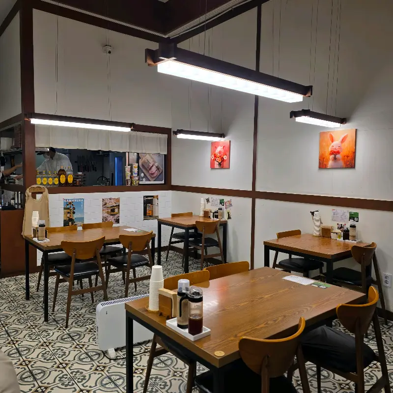매장 안은 생각보다 아늑하고 깔끔했다. 나무 테이블과 의자가 따뜻한 느낌을 주고, 은은한 조명이 편안한 분위기를 더했다. 벽에는 귀여운 그림들이 걸려있고, 잔잔한 재즈 음악이 흘러나왔다. 혼밥하는 사람들도 꽤 있었는데, 전혀 어색하지 않은 분위기였다. 나도 다음에는 혼자 와서 여유롭게 즐겨봐야지.