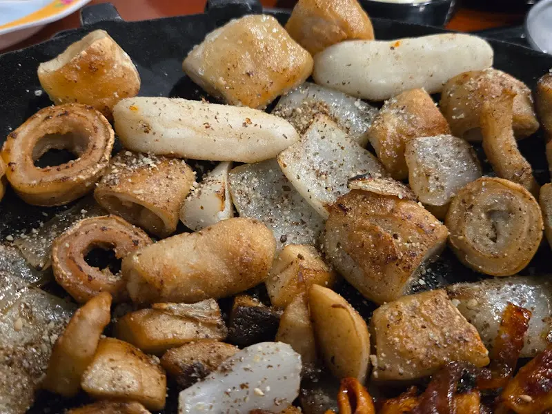가장 먼저 눈에 띈 것은 곱창전골이었다. 뚝배기 안에서 부글부글 끓고 있는 모습은 마치 화학 반응을 연상시켰다. 국물을 한 입 맛보니, 얼큰하면서도 깊은 감칠맛이 혀를 강타했다. 캡사이신 성분이 TRPV1 수용체를 자극하여 통증과 쾌감을 동시에 유발하는, 전형적인 매운맛의 과학적 원리가 적용된 듯했다. 들깨가루의 고소함이 더해져 복합적인 풍미를 냈다. 국물 안에는 알곱창이 가득 들어있어, 마치 보물찾기를 하는 듯한 즐거움까지 선사했다.