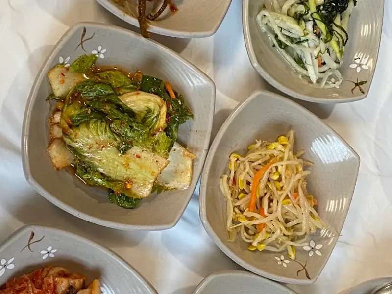 잠시 후, 밑반찬이 테이블에 차려졌습니다. 멸치볶음, 김치, 콩나물 무침 등 소박하지만 정갈한 반찬들이었습니다. 마치 실험 도구를 정돈하는 연구원처럼, 젓가락을 들어 반찬들을 하나씩 맛보기 시작했습니다. 콩나물 무침은 아삭한 식감이 살아있었고, 멸치볶음은 짭짤하면서도 달콤한 맛이었습니다. 특히 김치는 젖산 발효가 잘 진행되어, 입안에 기분 좋은 산미를 남겼습니다.