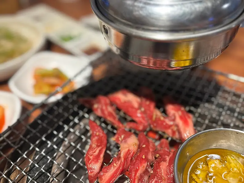 문을 열자, 생각보다 넓고 깔끔한 공간이 눈에 들어왔다. 테이블 간 간격도 넉넉하게 배치되어 있어 편안하게 식사를 즐길 수 있겠다는 생각이 들었다. 은은하게 퍼지는 숯불 향과 함께, 활기 넘치는 직원들의 모습이 인상적이었다. 특히 눈에 띄는 것은 테이블마다 설치된 환풍시설이었다. 고깃집 특유의 연기 걱정 없이 오롯이 맛에 집중할 수 있도록 세심하게 배려한 점이 마음에 들었다. 좌석은 8명 정도가 함께 앉을 수 있는 단체석도 마련되어 있어, 회식이나 모임 장소로도 훌륭하겠다는 생각이 들었다.
