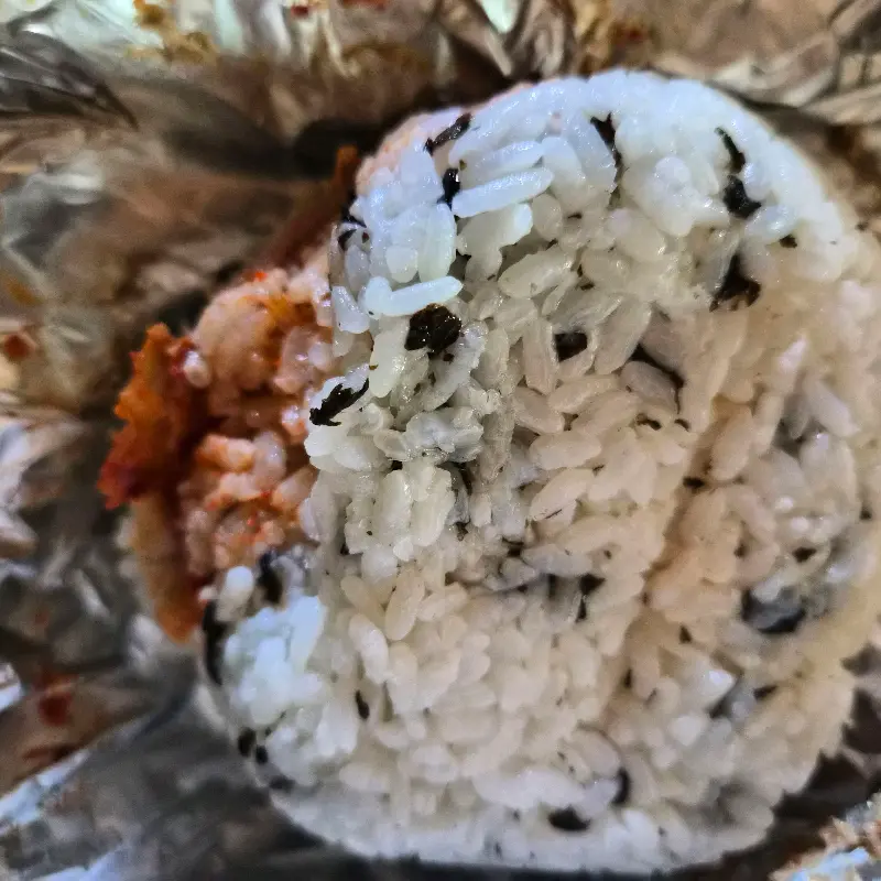 밥버거를 받아 들고 포장지를 뜯는 순간, 고소한 냄새가 코를 자극합니다. 마치 잘 조절된 화학 반응처럼, 밥, 김치, 햄, 김가루 등의 재료들이 완벽하게 조화를 이루고 있습니다. 에서 보이는 노란 포장지는 봉구스밥버거의 아이덴티티를 나타내는 중요한 요소 중 하나죠. 포장지 디자인은 단순하지만, 봉구스밥버거만의 개성을 잘 드러내고 있습니다.