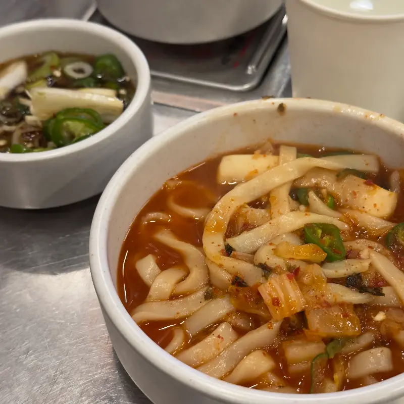곱창을 어느 정도 먹고 나니, 뭔가 아쉬운 마음이 들더라고. 그래서 오징어 김치 칼국수를 추가로 주문했지. 벽돌곱창에 오면 꼭 먹어봐야 한다는 이야길 들었거든.