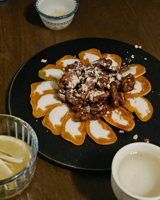 마딛따에 도착했을 때, 가장 먼저 눈에 들어온 것은 은은한 조명 아래 도란도란 이야기를 나누는 사람들의 모습이었다. 자리에 앉아 메뉴판을 펼치니, 익숙한 듯 낯선 조합들이 시선을 사로잡았다. 연저육, 감자전, 곶감치즈말이… 마치 화학 실험의 레시피처럼, 재료들의 조합만으로도 어떤 맛이 탄생할지 상상력을 자극했다.