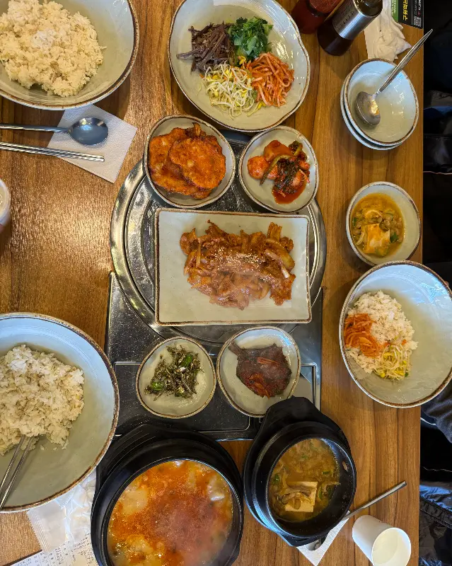 자리에 앉아 메뉴판을 보니, 청국장, 김치찌개, 제육볶음 등 추억을 자극하는 메뉴들이 가득했어요. 한참을 고민하다가, 가장 인기 있다는 청국장을 주문했지요. 잠시 후, 푸짐한 한 상이 차려졌는데, 보기만 해도 입가에 미소가 지어졌어요. 요즘 세상에 이렇게 정갈하고 푸짐한 밥상을 만나기 쉽지 않잖아요.