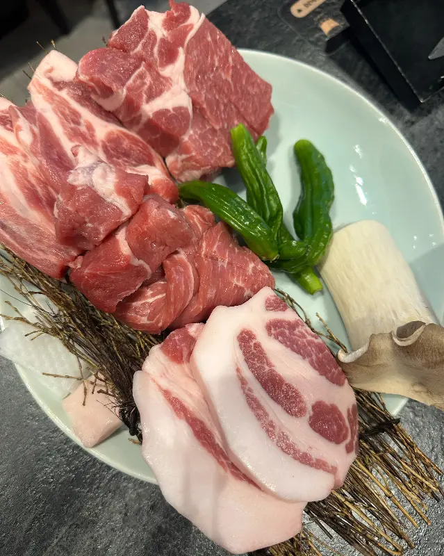 자리를 잡고 앉으니, 직원분께서 친절하게 메뉴판을 가져다주셨어. 메뉴를 훑어보니, 돈마구로 모둠이라는 특이한 메뉴가 눈에 띄더라고. 돼지고기 특수부위 모둠이라는데, 흔히 먹는 삼겹살이나 목살과는 다른 특별한 맛을 느낄 수 있다고 하니, 그냥 지나칠 수 없지. 바로 “돈마구로 모둠 하나 주세요!” 외쳤어.