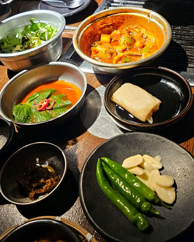 고기를 어느 정도 먹고 나니, 촌두부된장찌개와 냄비밥이 나왔어요. 뚝배기에 담긴 된장찌개가 어찌나 뜨끈뜨끈하던지! 냄새만 맡아도 속이 확 풀리는 기분이었답니다. 갓 지은 냄비밥은 윤기가 좔좔 흐르는 게, 보기만 해도 군침이 돌더라고요.
