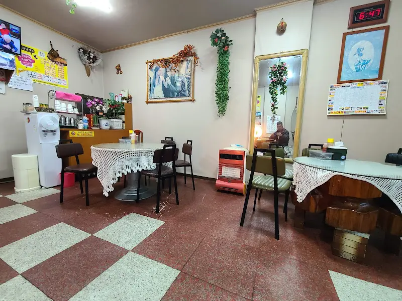 문을 열고 들어서자, 정겹고 소박한 분위기가 물씬 풍겼다. 붉은색과 흰색이 교차하는 바닥 타일은 어린 시절 자주 갔던 경양식집을 떠올리게 했다. 테이블에는 낡은 레이스 테이블보가 덮여 있었고, 벽에는 오래된 액자들이 걸려 있었다. 디지털시계는 6시 47분을 가리키고 있었다. 앤틱한 가구들과 소품들은 세월의 흔적을 고스란히 담고 있었지만, 오히려 편안하고 따뜻한 느낌을 주었다.