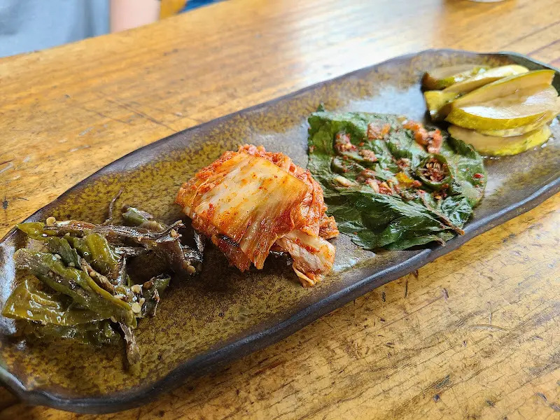 밑반찬은 화려하진 않았지만, 하나하나 정성이 가득 담겨 있었다. 짭짤하게 간이 밴 깻잎 장아찌는 밥 도둑이 따로 없었고, 아삭한 오이 장아찌는 입안을 개운하게 만들어줬다. 특히, 잘 익은 김치는 보기만 해도 군침이 돌았다. 직접 담근 듯한 김치는 시원하면서도 깊은 맛이 일품이었다.