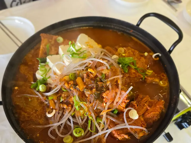 드디어 기다리고 기다리던 묵은지등뼈전골이 나왔어. 커다란 냄비에 묵은지, 등뼈, 큼지막한 두부, 당면 사리까지 푸짐하게 담겨 나오는데, 그 비주얼에 입이 떡 벌어지더라. 묵은지의 깊은 맛과 등뼈의 고소한 향이 코를 찌르는데, 아, 이건 맛이 없을 수가 없겠구나 싶었어.
