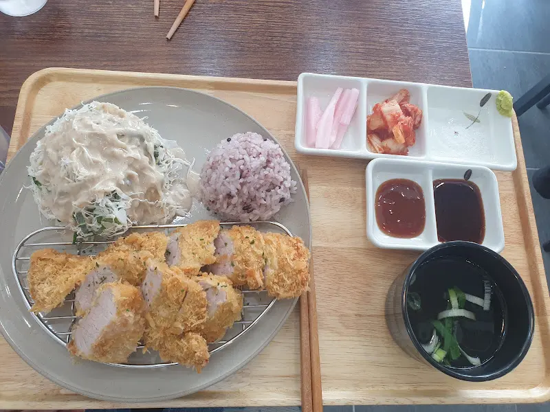 샐러드도 빼놓을 수 없지. 양배추 샐러드에 직접 만드신 듯한 소스를 듬뿍 뿌려 먹으니, 입안이 상큼해지는 게, 돈까스의 느끼함도 싹 잡아주더라. 밥도 그냥 흰쌀밥이 아니라, 흑미를 섞어서 지은 밥이라, 더 찰지고 고소한 맛이 났어.