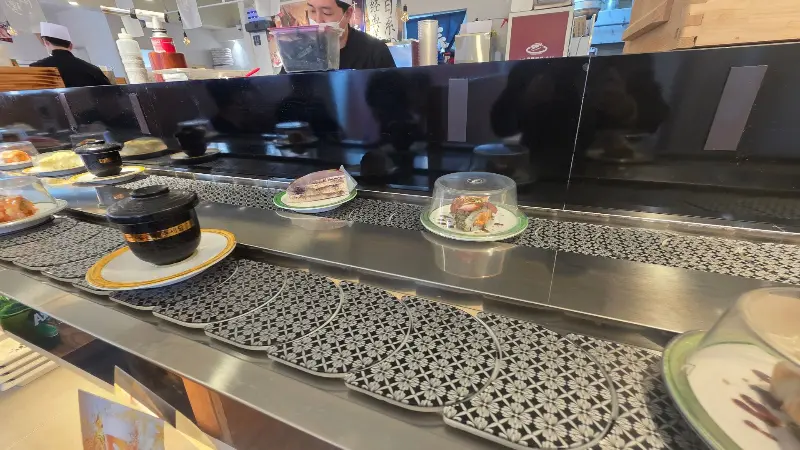 사진들을 다시 보니 그때 그 맛이 떠오르는 듯하네. 나무 받침 위에 정갈하게 놓인 성게알 초밥은 신선함이 눈으로도 느껴지고, 레일 위를 질서정연하게 달리는 초밥들의 모습, 은 보는 재미를 더했지. 메뉴판 사진을 보니, 못 먹어본 초밥들이 아른거려서 조만간 다시 방문해야겠다는 생각이 드는구먼. 자왕무시의 부드러운 식감도 잊을 수가 없고, 쌓여있는 빈 접시들은 얼마나 맛있게 먹었는지 증명해주는 듯했어.
