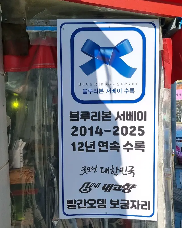 숙소 근처 중앙시장으로 향했다. 평소에는 잘 가지 않던 시장이었지만, 왠지 모르게 정겨운 분위기가 느껴졌다. 왁자지껄한 상인들의 목소리, 맛있는 냄새가 코를 찌르는 골목을 지나 드디어 ‘보금자리’를 발견했다. 멀리서도 눈에 띄는 빨간 간판이 왠지 모르게 나를 반겨주는 듯했다. 2014년부터 2025년까지 12년 연속 블루리본 서베이에 수록되었다는 안내판이 붙어있는걸 보니, 과연 제천 맛집의 위엄이 느껴졌다.