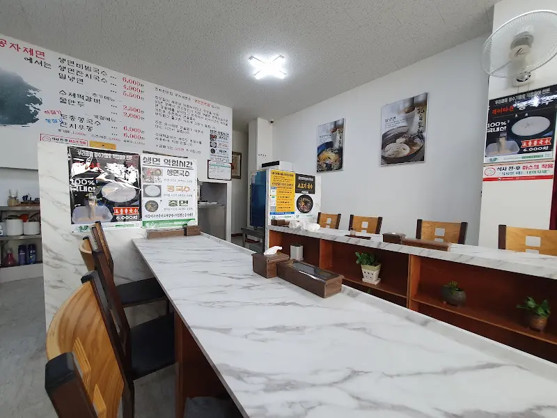 이미지들을 살펴보면, 가게 외관은 간판에 “공자제면”이라는 상호가 크게 적혀 있어 찾기 쉽다. 가게 앞에는 메뉴를 소개하는 입간판이 세워져 있어, 어떤 메뉴를 판매하는지 미리 확인할 수 있다. 내부는 테이블과 의자가 나무 재질로 되어 있어 따뜻한 느낌을 준다. 벽에는 메뉴 사진과 함께 원산지 표시판이 붙어 있어 신뢰감을 준다.