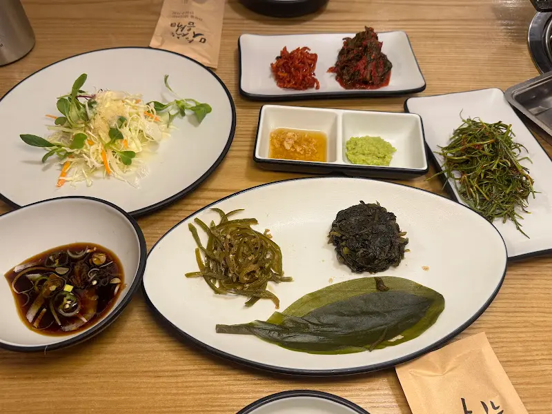 가장 먼저 추천해 주신 조합은 차돌박이, 관자, 그리고 곤드레 장아찌의 삼합이었다. 잘 익은 차돌박이 한 점을 곤드레 장아찌와 함께 곁들여 입에 넣으니, 입안 가득 퍼지는 풍미에 저절로 감탄사가 터져 나왔다. 고소한 차돌박이와 쫄깃한 관자, 향긋한 곤드레 장아찌의 조화는 그야말로 환상적이었다. 짭짤하면서도 향긋한 곤드레 장아찌는 느끼함은 잡아주고 풍미는 더해주는, 신의 한 수였다.