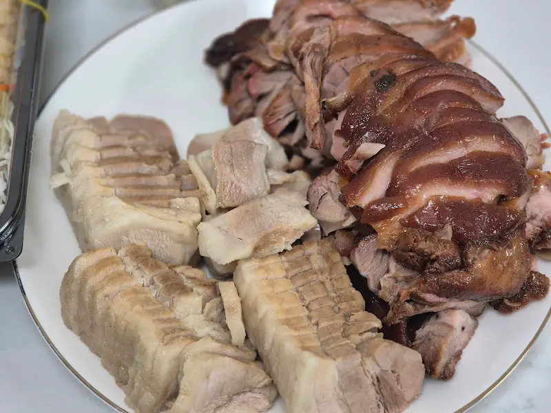 쟁반국수도 빼놓을 수 없지! 새콤달콤한 양념에 쫄깃한 면발, 아삭아삭한 채소까지… 진짜 족발, 보쌈이랑 같이 먹으니까 느끼함도 싹 잡아주고, 입맛도 돋워주더라. 특히 족발 한 점, 쟁반국수 한 젓가락 같이 먹으면… 진짜 천상의 맛! 쟁반국수 위에는 양배추, 적채, 당근 등 형형색색의 채소들이 면과 함께 넉넉하게 올려져 있었어.