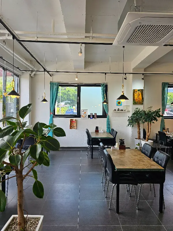 문을 열자마자 깔끔한 인테리어가 눈에 확 들어오더랑께요. 천장에 매달린 조명도 은은하니 분위기를 더하고, 테이블 간 간격도 널찍해서 편안하게 식사할 수 있겠더라 이 말씀. 벽 한쪽에는 흑백 영화 포스터 같은 그림도 걸려있고, 아기자기한 소품들이 놓여있는걸 보니 주인장의 센스가 보통이 아니구나 싶었슈.