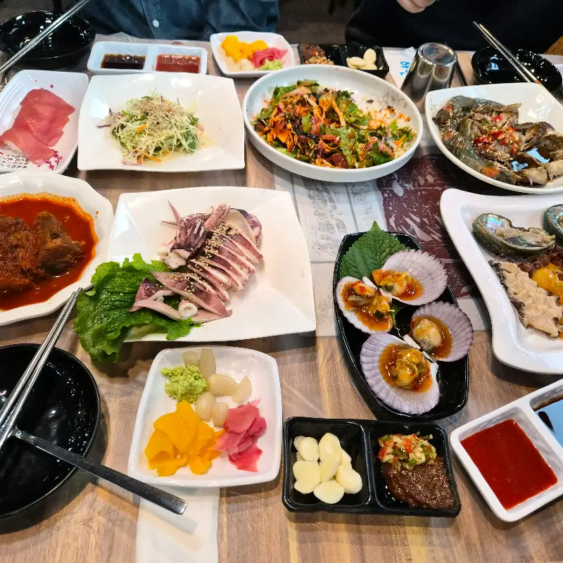 식당 내부는 넓고 깔끔했다. 테이블 간 간격도 넉넉하여 편안하게 식사를 즐길 수 있는 분위기였다. 메뉴판을 받아 들고 잠시 고민에 빠졌다. 모듬회, 참치, 전복… 하나같이 싱싱한 해산물들이 눈길을 사로잡았다. 결국, 나는 이 곳의 ‘자연산 모듬회’를 선택했다. 자연산이라는 단어에서 느껴지는 싱싱함과 풍부한 맛에 대한 기대감을 떨칠 수 없었기 때문이다.