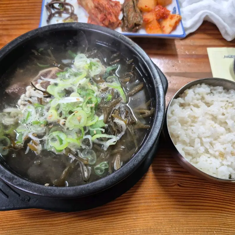 여행 전부터 뜸북이갈비탕에 대한 기대감이 하늘을 찔렀어. 톳과는 또 다른 식감이라는데, 도대체 뭔 맛일까 상상력 풀가동! 꼬들꼬들한 해초를 갈비탕에 넣었다니, 이건 분명히 혁명적인 맛일 거라 확신했지. 마치 ‘미래에서 온 갈비탕’ 같은 느낌이랄까?