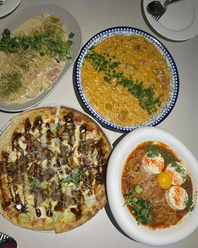 도담파스타의 메뉴판을 펼치는 순간, 눈이 휘둥그레졌다. 흔히 보던 파스타, 피자 메뉴들 사이에 ‘깻잎 파스타’, ‘불고기 피자’, ‘김치 리조또’ 등 독특한 이름들이 눈에 띄었다. 이곳이 왜 퓨전 파스타 맛집으로 유명한지 단번에 알 수 있었다. 고민 끝에, 가장 인기 있다는 깻잎 파스타와 불고기 피자, 그리고 궁금증을 자아내는 뚝배기 김치 리조또를 주문했다.