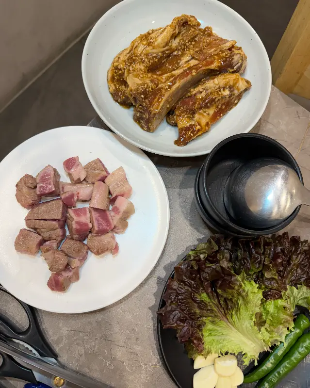 메뉴 소개: 돼지갈비부터 삼겹살, 특별한 곁들임까지!