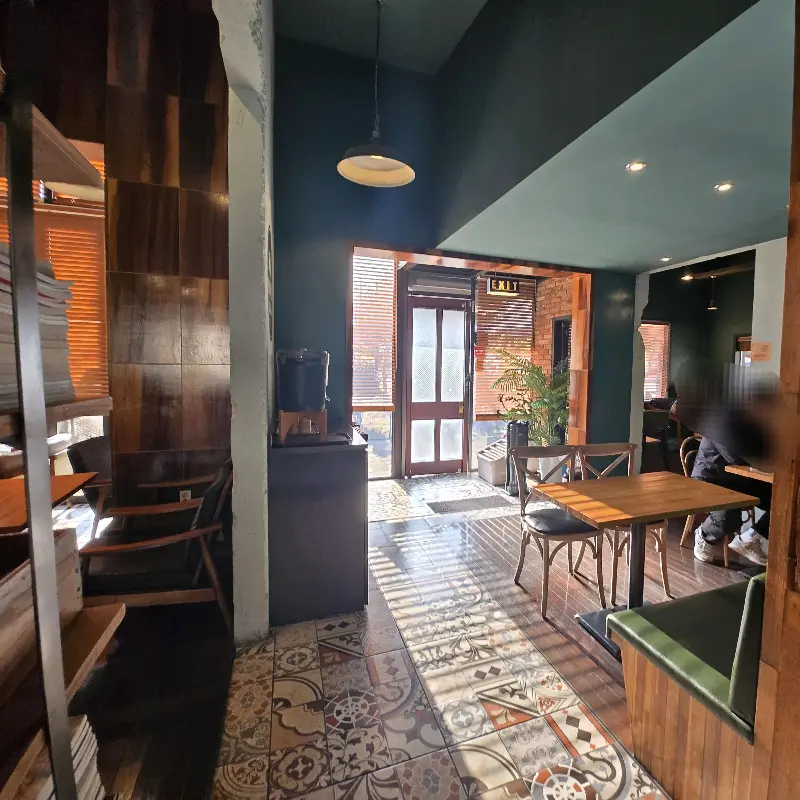 카페 안은 생각보다 넓고 아늑했다. 테이블 간 간격도 넉넉해서 편안하게 대화를 나눌 수 있는 분위기였다. 벽 한쪽에는 오래된 듯한 나무 책장이 놓여 있었는데, 낡은 책들에서 풍겨져 나오는 세월의 향기가 공간에 깊이를 더했다. 창밖으로는 푸르른 느티나무 공원이 한눈에 들어왔다. 초록의 싱그러움이 카페 안으로 스며들어, 마치 자연 속에서 커피를 마시는 듯한 기분을 선사했다. 평일 점심시간이 조금 지난 시간이었는데도, 창가 자리는 이미 사람들로 가득했다. 역시, 좋은 곳은 다들 알아보는 법이지.