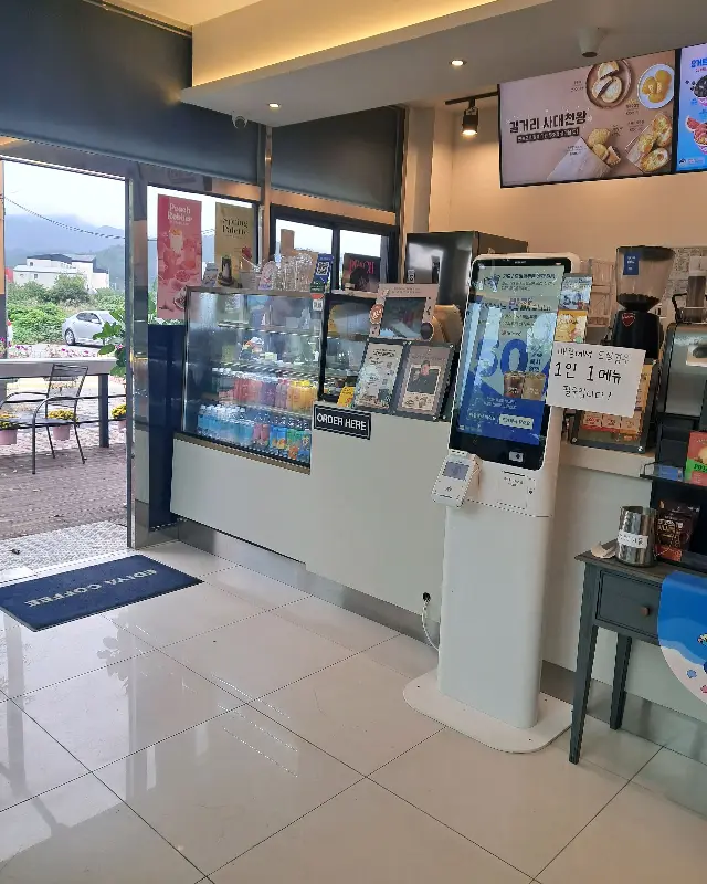 리조트에서 가까운 곳에 자리 잡은 이디야 커피 부안격포채석강점. 푸른색과 흰색이 조화롭게 어우러진 외관이 멀리서도 눈에 띄었다. 파란 하늘과 어우러진 모습이 마치 지중해의 작은 카페를 연상시키는 듯했다. 문을 열고 들어서자, 깔끔하고 넓은 공간이 시원하게 펼쳐졌다. 매장 곳곳에는 은은한 조명이 따스함을 더하고 있었고, 청결하게 관리된 모습에서 편안함이 느껴졌다.