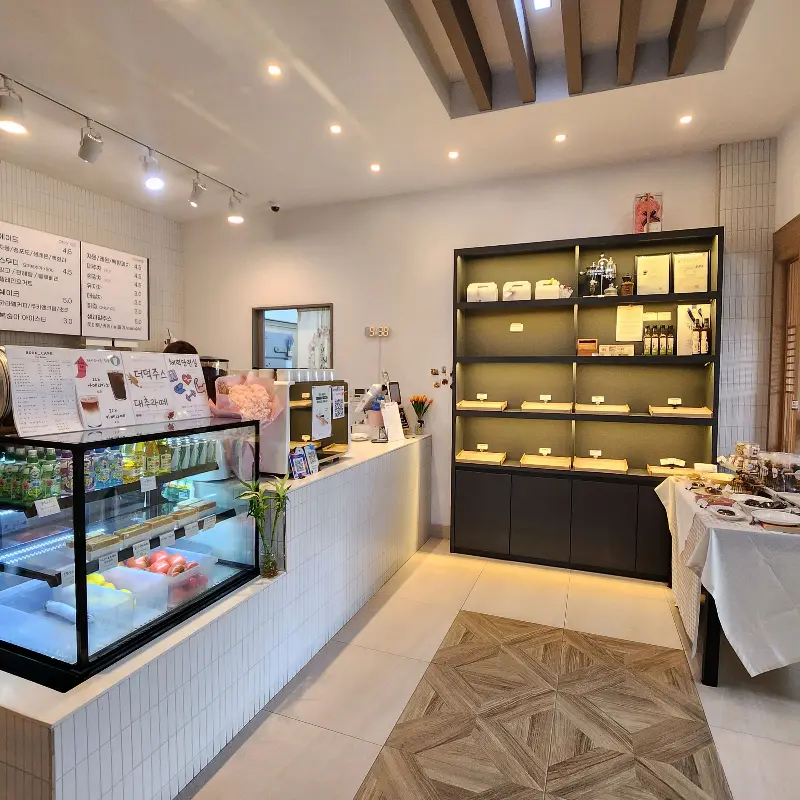 다양한 디저트와 음료를 판매하는 카페 내부