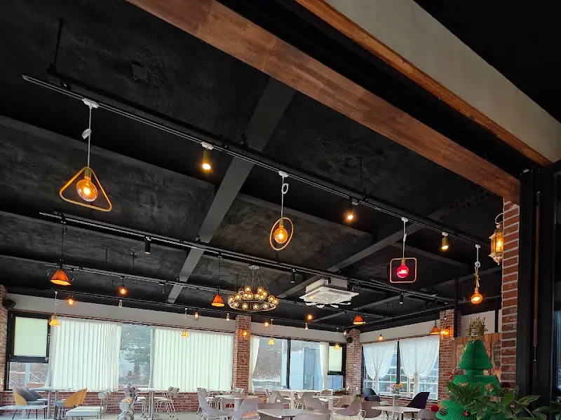 문을 열고 들어서는 순간, 은은하게 퍼지는 커피 향과 함께 아늑한 분위기가 나를 감쌌다. 높은 천장과 넓은 창문 덕분에 실내는 시원하게 개방된 느낌이었고, 곳곳에 놓인 감각적인 소품들은 공간에 생기를 불어넣고 있었다. 천장에는 다양한 디자인의 조명이 설치되어 있었는데, 특히 샹들리에의 은은한 빛이 고급스러움을 더했다. 붉은 벽돌로 마감된 벽면은 따뜻한 질감을 선사하며, 시각적인 즐거움을 더했다.
