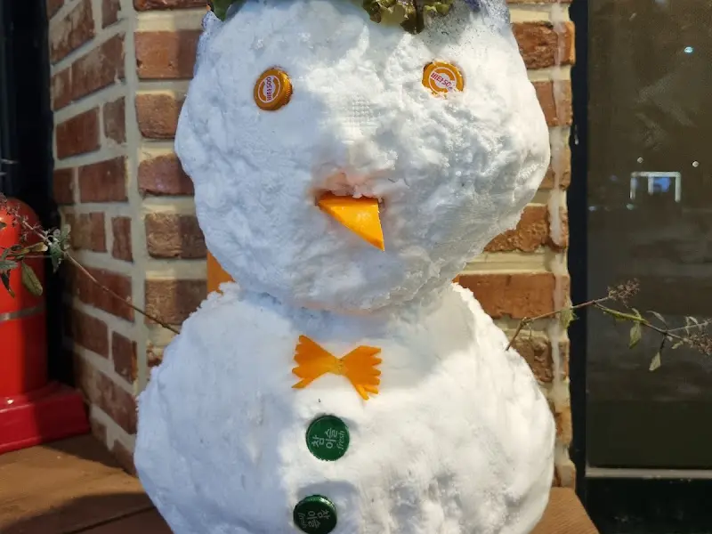 가게 앞에 도착하니, 누가 만들어 놓았는지 앙증맞은 눈사람이 반겨주는 거야. 빨간 벽돌 건물 옆에 세워진 눈사람을 보니 어릴 적 동네 골목에서 친구들과 눈싸움하던 추억이 새록새록 떠오르면서 마음이 따뜻해지더라. 귤껍질로 만든 코와 병뚜껑으로 만든 눈이 어찌나 귀엽던지, 주인장의 센스에 절로 미소가 지어졌어.