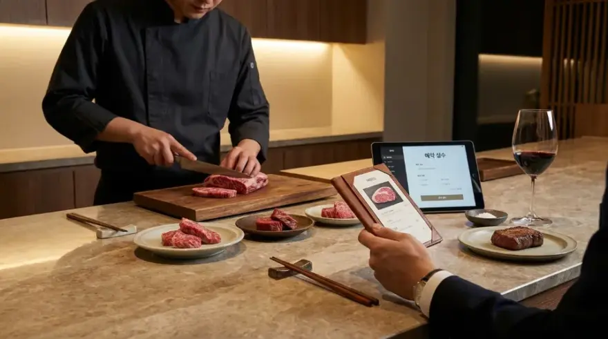 입문자라면 반드시 카운터(바) 좌석을 선점하십시오. 눈앞에서 셰프가 고기의 상태를 보여주고, 굽자마자 내 접시 위에 올려주는 그 1~2초의 차이가 육즙의 향연을 좌우합니다. 또한, 런치 2부나 디너 2부처럼 ‘뒷타임’ 예약 시 주의할 점이 있습니다. 앞 타임 정비가 늦어지면 입장이 지연될 수 있고, 마감 시간에 쫓겨 식사 후반부에 디저트를 허겁지겁 먹게 되는 불상사가 생깁니다. 여유로운 식사를 원한다면, 가능하면 해당 타임의 첫 번째 시간대를 공략하는 것이 심리적으로 훨씬 안정적입니다.