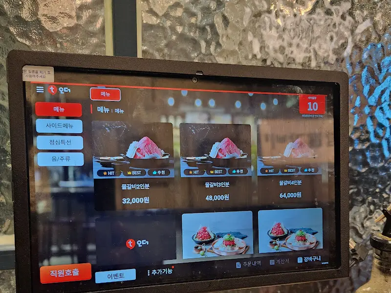 태블릿 메뉴판에서 다양한 물갈비 메뉴를 확인할 수 있다.