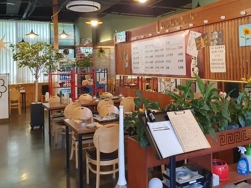 매장 문을 여는 순간, 깔끔함이 싹 감싸네. 마치 갤러리 온 듯, 인테리어 센스에 감탄사 연발. 테이블 간 간격도 넉넉해서 프라이빗한 식사 가능! 데이트 코스로도 완전 딱이겠어. 나무 소재와 은은한 조명이 어우러져 아늑한 분위기를 연출하고, 곳곳에 놓인 화분들이 싱그러움을 더하네. 창밖으로 보이는 청라의 풍경은 덤!