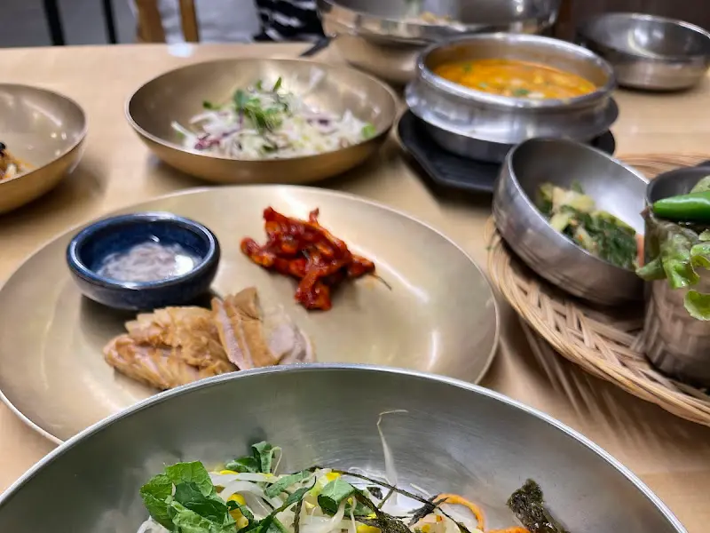 뿐만 아니라, 샐러드, 잡채 등 다양한 반찬들이 놋그릇에 정갈하게 담겨 나왔다. 특히 샐러드는 신선한 채소와 상큼한 드레싱이 어우러져 입맛을 돋우는 역할을 톡톡히 했다. 잡채는 구색 맞추기 정도였지만, 다른 반찬들이 워낙 훌륭해서 아쉬움은 없었다.