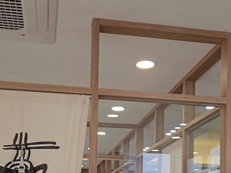 문을 열고 들어서자, 넓고 깔끔한 공간이 눈에 들어왔다. 테이블 간 간격도 넉넉해서 편안하게 식사를 즐길 수 있을 것 같았다. 유모차를 끌고 온 가족 단위 손님도 불편함 없이 식사할 수 있을 정도로 공간이 넓어 보였다. 은은하게 퍼지는 따뜻한 조명 아래, 나무 소재로 짜여진 격자 프레임이 시선을 사로잡았다. 거기에 드리워진 흰색 천에는 가게 이름과 함께 칼국수를 형상화한 듯한 그림이 검은색으로 간결하게 그려져 있어, 세련되면서도 정갈한 분위기를 자아냈다.