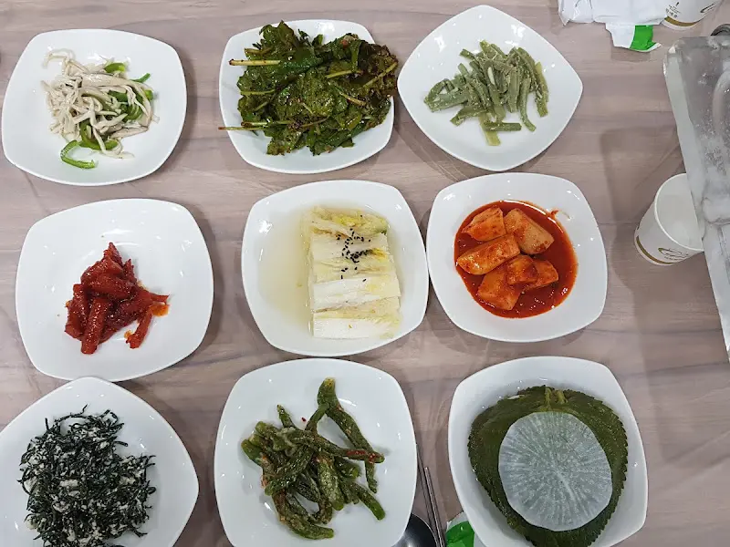 주문하고 얼마 지나지 않아 밑반찬이 쫙 깔리는데… 와, 진짜 입이 떡 벌어졌다. 반찬 종류가 어마어마하게 많았다. 하나하나 직접 만드신 시골 반찬이라고 하시는데, 진짜 외갓집 할머니 밥상 같은 푸근함이 느껴졌다.