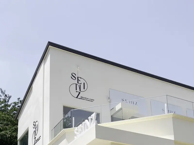 건물 딱 마주하는 순간, 숨멎. 깔끔한 화이트톤 외관에 감각적인 폰트로 박힌 “SEINZ GARDEN” 로고가 시선 강탈. 마치 잘 꾸며진 갤러리 같은 느낌이랄까. 일단 비주얼 합격. 사진 찍는 거 좋아하는 나, 여기서부터 셔터 막 눌러댐. 인스타 업로드 각 제대로 섰다 이거지. 건물 옆으로 시원하게 뻗은 테라스 난간도 눈에 띄네.