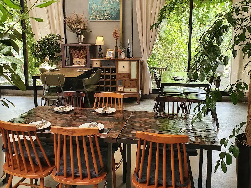 주문을 마치고, 레스토랑 곳곳을 둘러보았다. 천장에는 넝쿨 식물들이 드리워져 있었고, 빈티지한 소품들이 아늑한 분위기를 더했다. 커다란 창밖으로는 푸른 나무들이 펼쳐져 있어, 마치 숲 속에서 식사를 하는 듯한 느낌을 받았다. 곳곳에 놓인 화분들과 아기자기한 소품들은 사진 찍기에도 안성맞춤이었다.