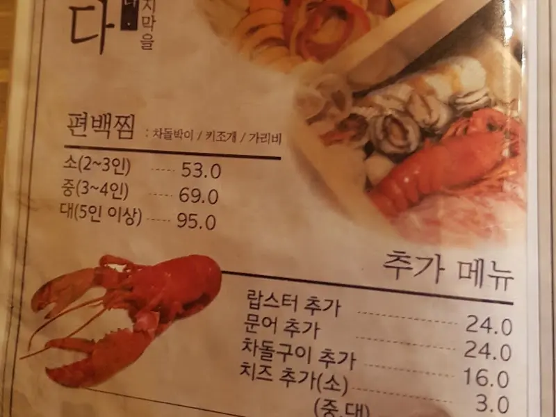 메뉴판을 보니 편백찜이 주력 메뉴인 듯했다. 차돌박이, 키조개, 가리비 등 다양한 재료를 찜으로 즐길 수 있다니, 보기만 해도 군침이 돌았다. 혼자 먹기에는 양이 조금 많을 것 같아 소(小)자를 주문했다. 가격은 53,000원. 혼밥 치고는 조금 부담스러운 가격이지만, 오늘은 나를 위한 특별한 선물이라고 생각하기로 했다.
