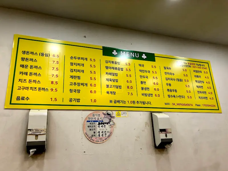 자리에 앉아 메뉴판을 살펴보니, 돈가스, 냉면, 찌개 등 다양한 메뉴가 눈에 들어왔다. 잠시 고민하다가, 어린 시절 가장 좋아했던 왕돈까스와 매콤한 순두부찌개를 주문했다. 벽에 붙은 메뉴판을 가득 채운 메뉴들은 하나같이 저렴한 가격을 자랑한다. 생돈가스가 6,500원, 순두부찌개가 5,500원이라니, 요즘 같은 시대에 이런 가격은 정말 찾아보기 힘들다.