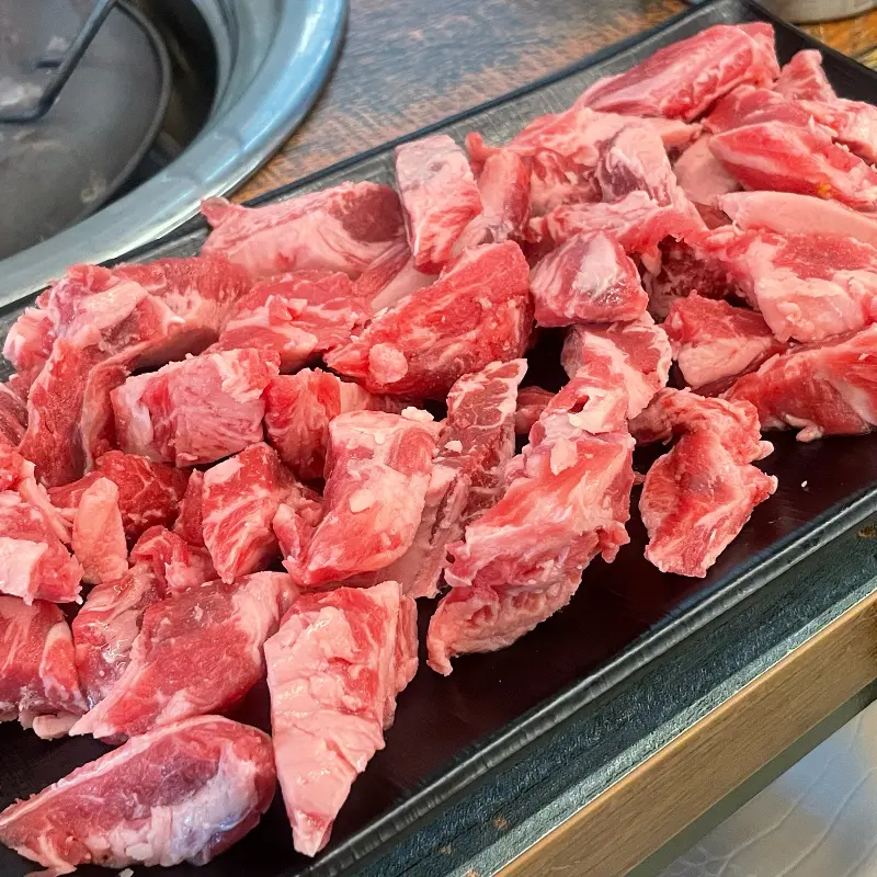 자리를 잡고 앉아 메뉴판을 훑어봤지. 뭘 먹을까 고민하다가, 오늘은 왠지 소갈비살이 끌리더라고. 그래서 소갈비살 2인분에 시원한 물냉면 하나를 시켰어. 주문을 마치니, 따뜻한 숯불이 순식간에 테이블 위로 놓였어. 숯불이 들어오니 훈훈한 열기가 온몸을 감싸는 게, 벌써부터 기분이 좋아지는 거 있지.