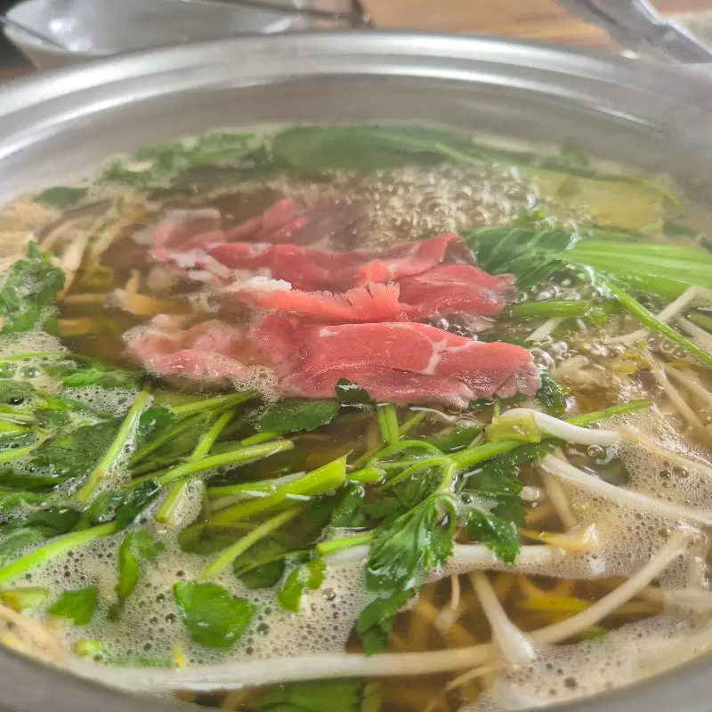 육수가 끓기 시작하자, 냄비 안에 소고기를 살짝 담갔다가 건져 먹으니, 아이고, 입에서 살살 녹는다는 게 바로 이런 거구나. 고소한 소고기와 시원한 국물이 어우러지니, 콧노래가 절로 나오더라. 특히 미나리 향이 어찌나 좋던지, 입안 가득 퍼지는 향긋함에 정신이 번쩍 들었어.