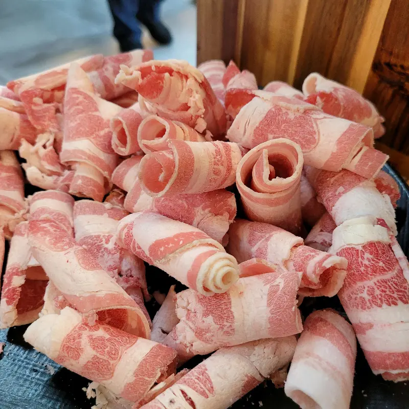 얇게 말린 대패삼겹살이 가득 담겨져 있는 모습