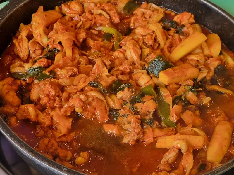 메뉴판을 스캔하듯 훑어본 후, 닭갈비 2인분과 쫄면 사리를 추가했다. 닭갈비의 매콤함을 중화시켜줄 동치미도 빼놓을 수 없다. 잠시 후, 붉은 양념에 버무려진 닭갈비가 철판 위에 올려졌다. 닭고기의 신선함이 육안으로도 확인될 정도였다. 큼지막하게 썰린 닭고기는 보기만 해도 식감을 자극했다. 닭갈비가 익어가는 동안, 침샘에서는 아밀라아제가 활발하게 분비되기 시작했다.