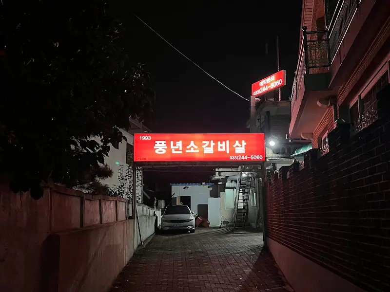어둑한 저녁, 퇴근하고 급하게 달려간 춘천. 오늘 나의 목적지는 30년 넘게 한자리를 지켜온 노포, 풍년소갈비살이야. 간판부터가 ‘나 맛집’이라고 써 붙여 놓은 듯한 포스! 1993년부터 영업했다니, 나보다 형님뻘 되는 가게잖아? 왠지 모르게 믿음이 팍팍 솟아오르는 거 있지.