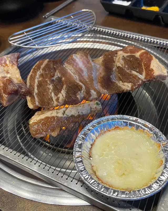 가게 내부는 이미 많은 사람들로 북적였습니다. 테이블 간 간격은 적당했고, 환풍시설도 잘 갖춰져 있어 쾌적한 환경에서 식사에 집중할 수 있었습니다. 특히 인상적이었던 건, 테이블마다 놓인 숯불 화로였습니다. 숯불은 복사열을 통해 고기를 속부터 익혀주어, 겉은 바삭하고 속은 촉촉한, 이상적인 마이야르 반응을 이끌어내죠.